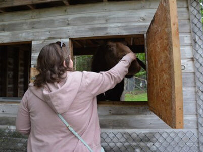 “A New Camera“ > Jessica, age 19, loves photography and taking pictures of nature. She headed to Maine with her mother, Laura. She was able to get close and personal, taking pictures and petting “Annie the Moose” and other animals.